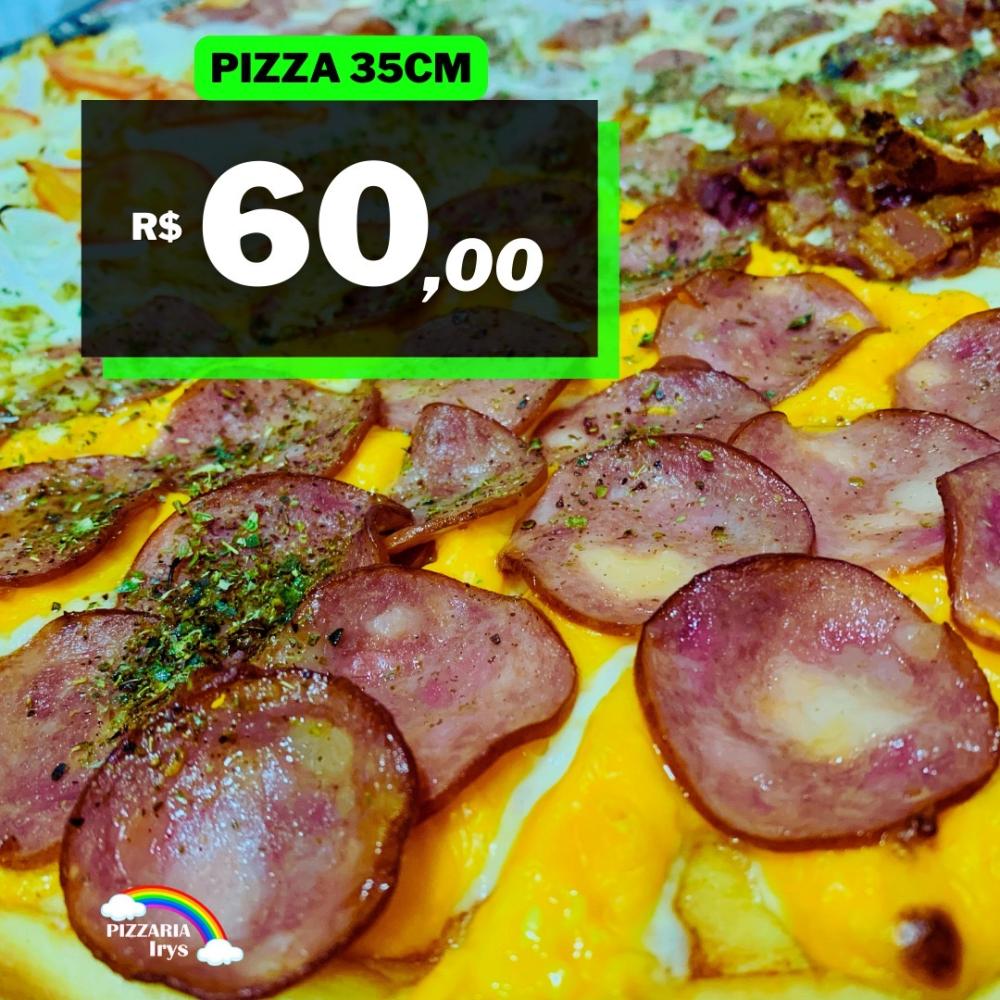 (Molho de tomate, mussarela, calabresa, presunto, azeitona, cheddar e orégano)